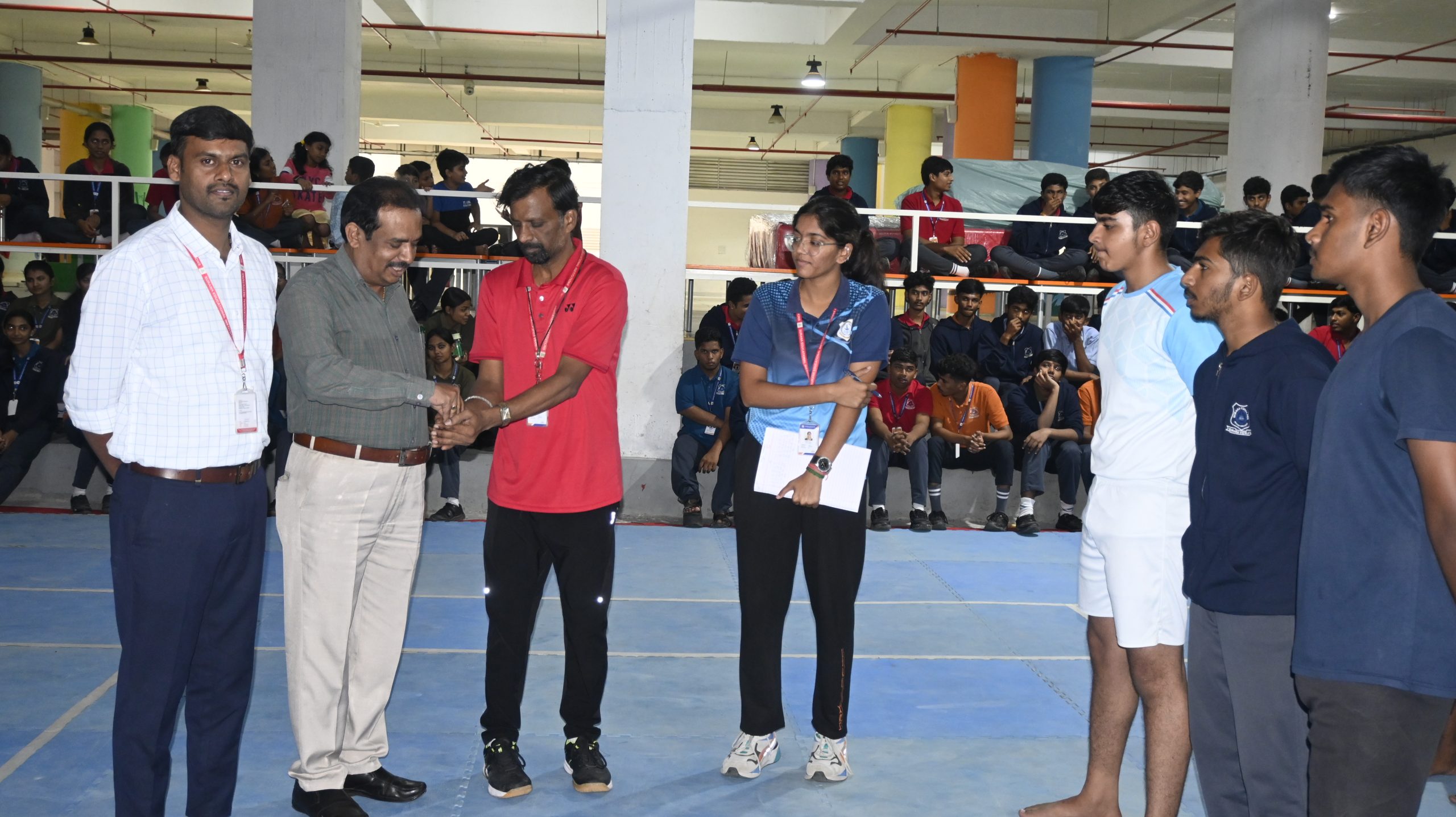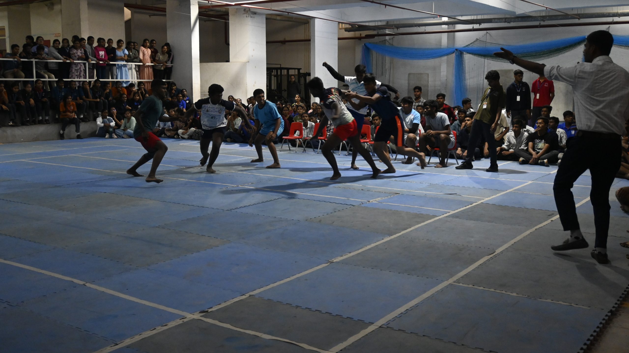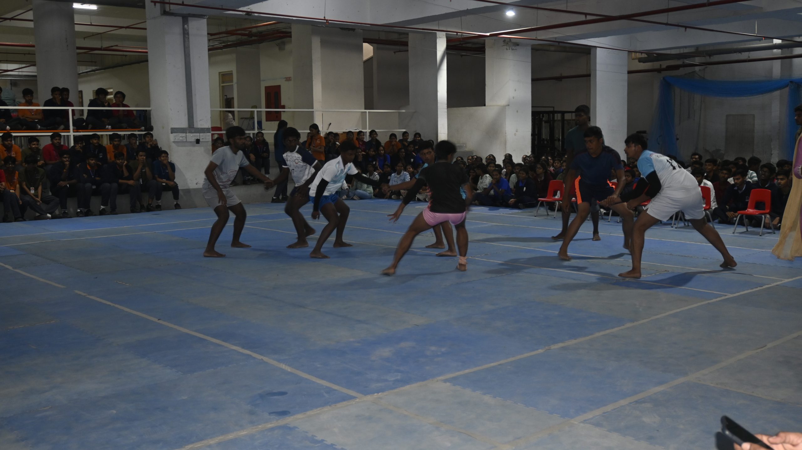 Intra College kabaddi Competition held on 12th July 2025, in our campus one of the most awaited tournaments which held successfully in the campus. Students with their outstanding teamwork and leadership skills made the event grand success. The competition has boosted the college spirit and encouraged the student engagement. Students developed the sportsmanship and built a memorable friendship. Our principal tossed the coin and the toss winning team started the game with great enthusiasm. Our principal encouraged the students through out the game which made the tournament most memorable and special for the players.